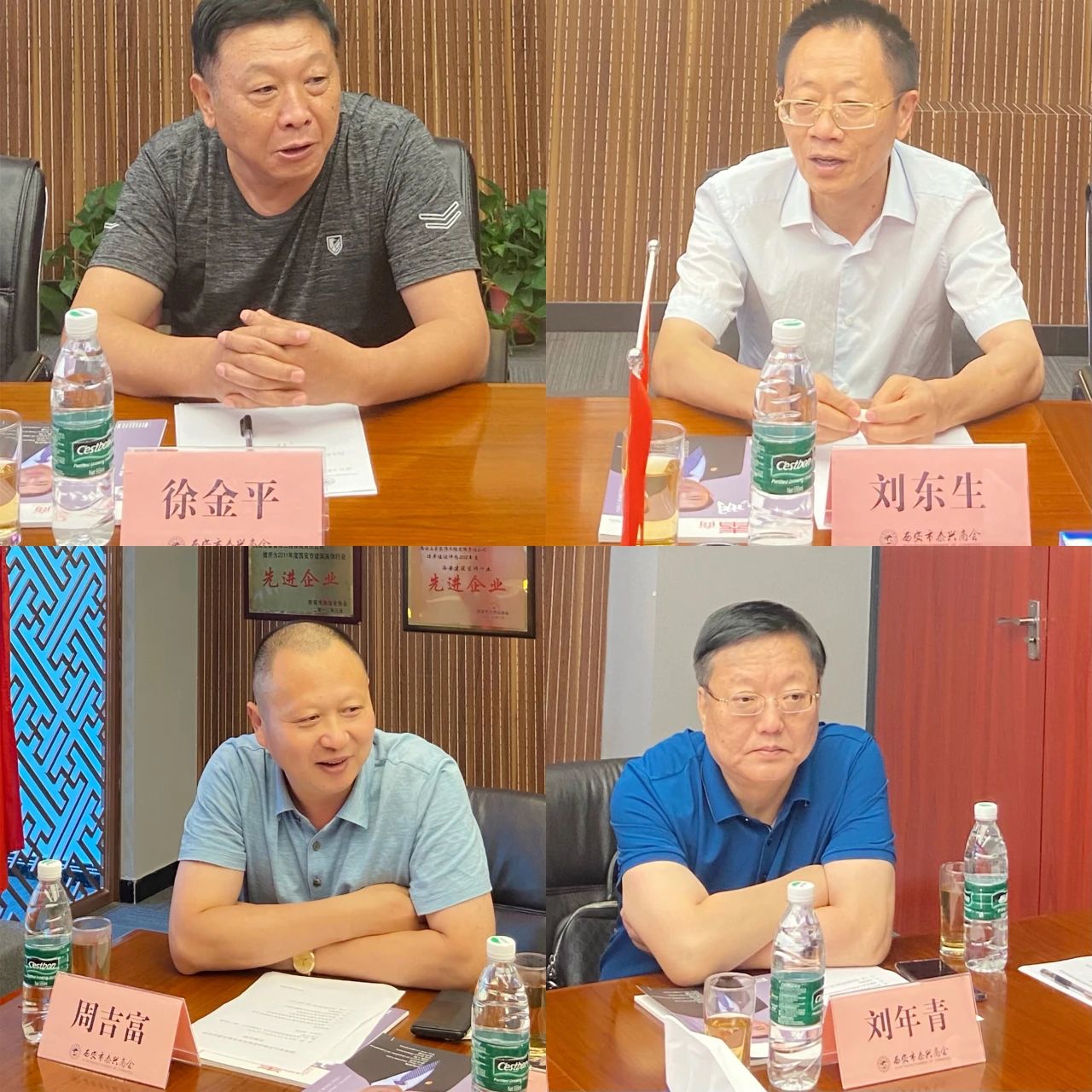 7月9日上午,陜西省江蘇商會(huì)會(huì)長胡德林、監(jiān)事長李亞輝、副會(huì)長吳濟(jì)翔、沈九龍、陸明峰、夏春祥,秘書長劉飛一行蒞臨集團(tuán)考察交流。